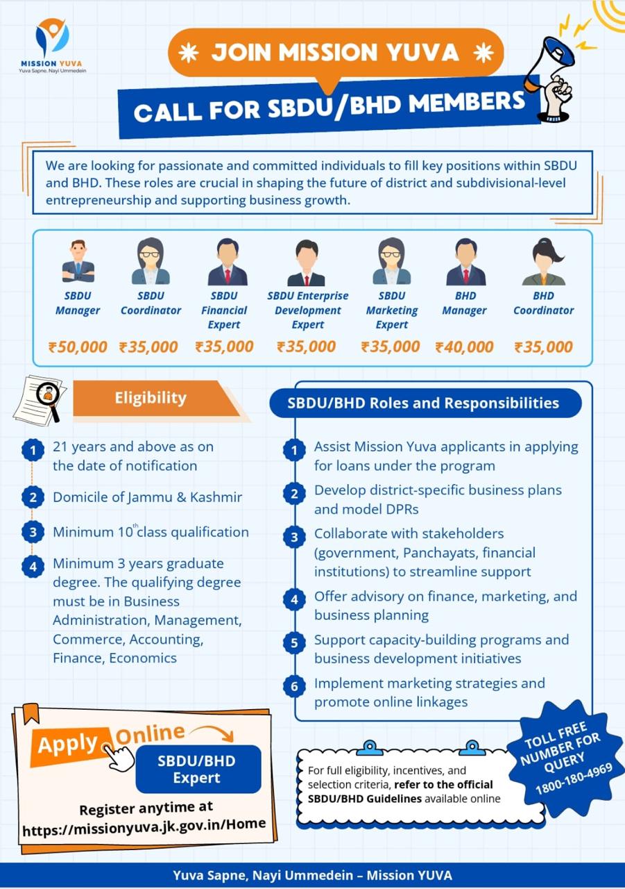 Registration of the students on the Mission YUVA App & Submission of Feedback Mission YUVA_ Udyam Jagriti 4.0 Vf (2) . Call for SBDU/BHD Members . Please find below the links to all the official social media channels of Project YUVA: 1. X (Twitter): https://tinyurl.com/33xe2b6u2. Instagram: https://shorturl.at/ED7gr3. Facebook: https://shorturl.at/h3ZYk4. YouTube: https://shorturl.at/oK4oW View